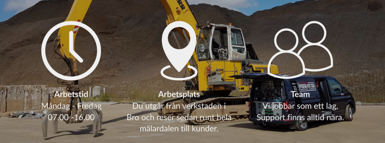 Som fältmekaniker utgår du från vår verkstad i Bro men spenderar större delen av dagarna ute hos kunder runtom i Storstockholm och Mälardalen. Här är ingen dag den andra lik – ena dagen reparerar du en tiltrotator på en minigrävare i centrala Stockholm, nästa dag servar du en hjullastare i ett grustag utanför Åkersberga.